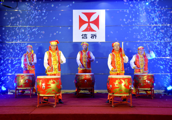 晚會(huì)在開(kāi)場(chǎng)鼓中拉開(kāi)序幕,高亢的歌曲,精彩的反串表演,激情的笛子獨(dú)奏等節(jié)目,特別是“信橋之歌”展現(xiàn)了信橋人積極奮進(jìn)的精神風(fēng)貌。周年慶的創(chuàng)意蛋糕上“專業(yè)”“做精”也展現(xiàn)了信橋公司的市場(chǎng)經(jīng)營(yíng)理念。