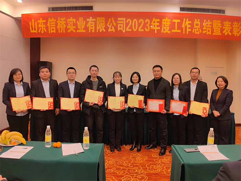 2024年1月8日,山東信橋?qū)崢I(yè)有限公司2023年度總結(jié)暨表彰大會在泰安帝苑酒店隆重舉行。董事長徐立波、總經(jīng)理徐宏以及辦公室人員50余人參加了會議。會議由副總經(jīng)理石振偉主持。